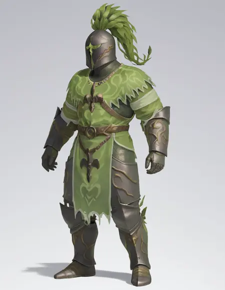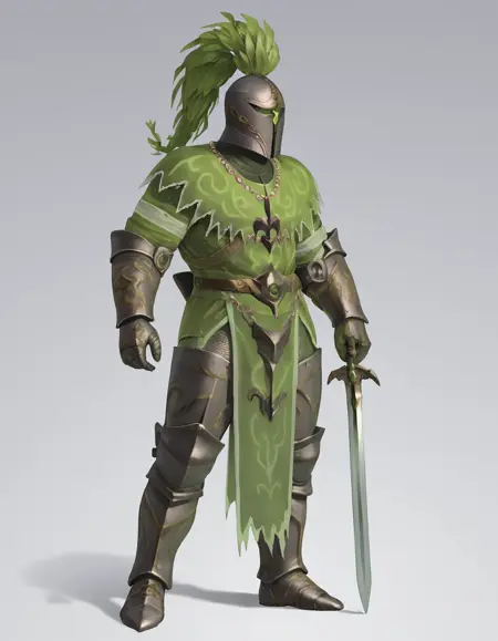 GreenKnight, human, armor, helmet, full body, standing,