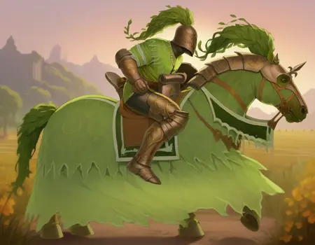 しかし、多くの人々はこれらの物語が実際の出来事と結びついていることに気づいていない。グリーンナイトは、ブレトニアの神聖な守護者であり、その霊的本質は土地と湖のレディー自身と深く結びついている。歴史を通じて、多くの探求騎士たちに姿を見せた彼は、空が黄昏の闇で覆われ、緑色の霧が大地から湧き上がり、ゆっくりと嘶く馬に乗った人物の形を取ると語っている。