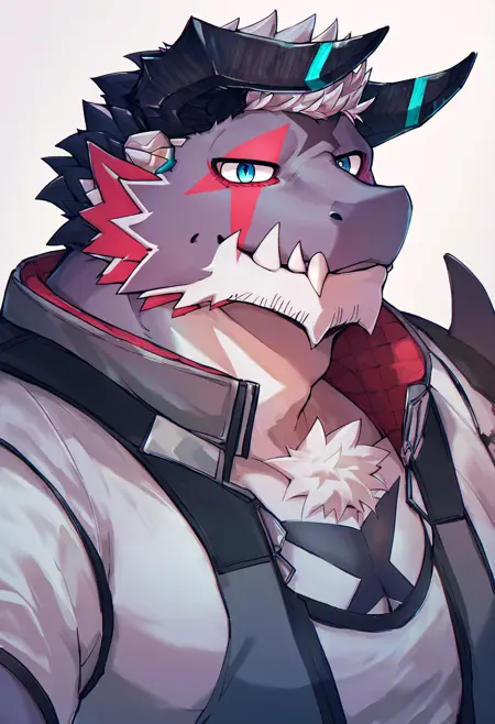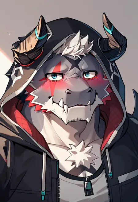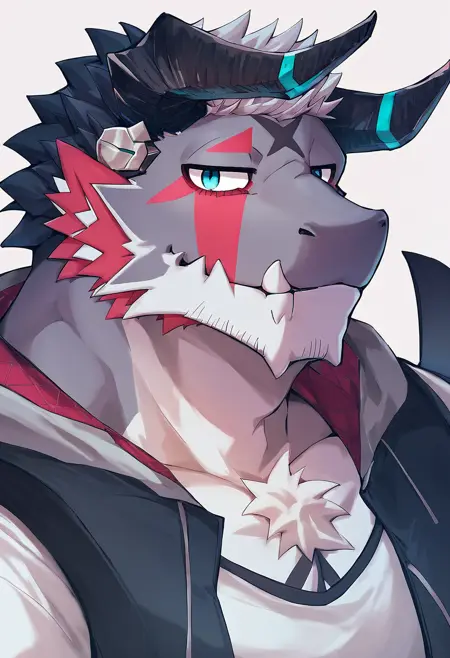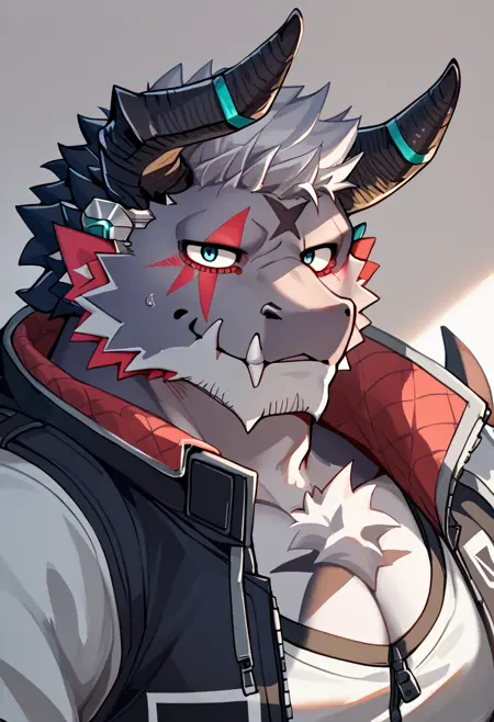 Illustrious: best quality, amazing quality, very aesthetic, absurdres, newest, live a hero, giansar, furry male, furry, bara, horns, solo, looking at viewer, ...your tags...