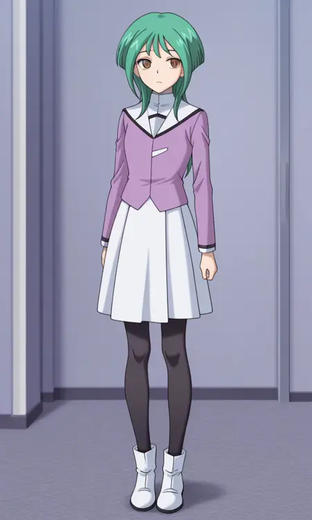 tokoha_u,紫色校服,白色裙子,黑色连裤袜,白色鞋子,