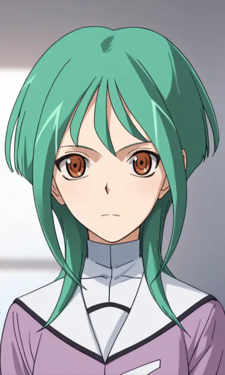 purple school uniform, white pleated skirt, black pantyhose, white footwear,