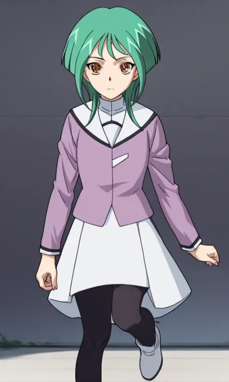 tokoha_u, purple school uniform, white skirt, black pantyhose, white footwear,