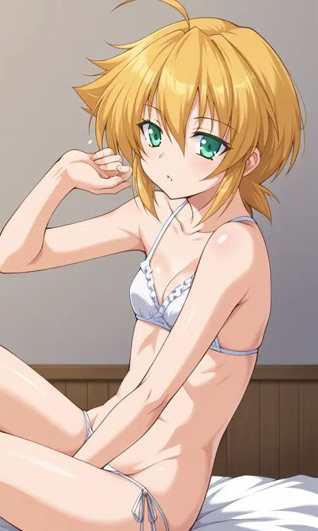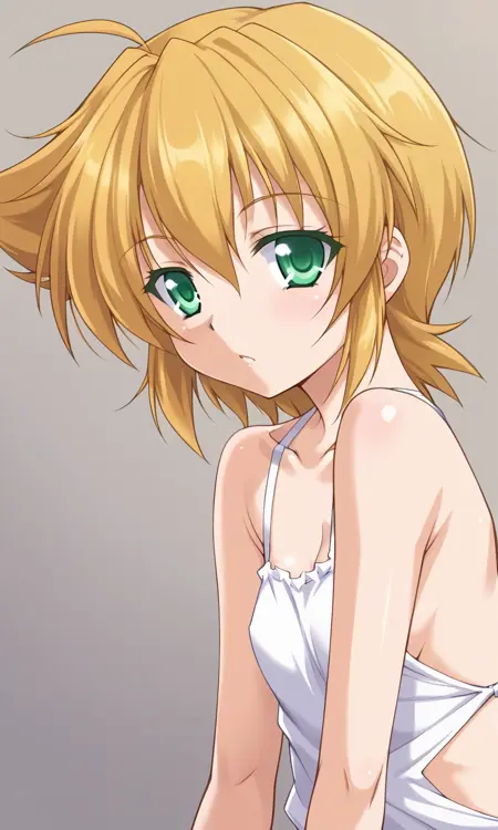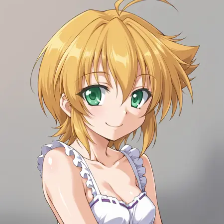 Shana Mikage, green eyes, short hair, blond hair, messy hair, ahoge