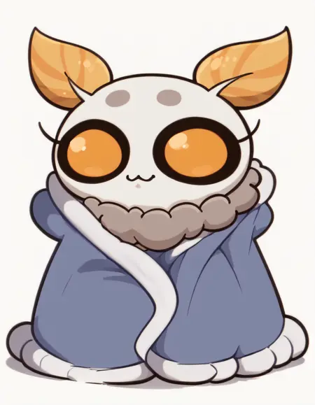 提示词: 博西亚,男性,单独,白色身体,白色耳朵,黑色眼白,蓝色眼睛,两条腿,四条手臂,白色翅膀,赤裸,飞蛾。