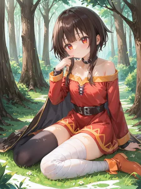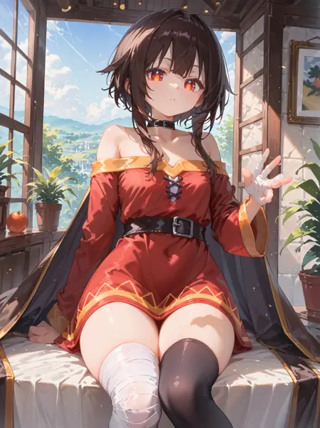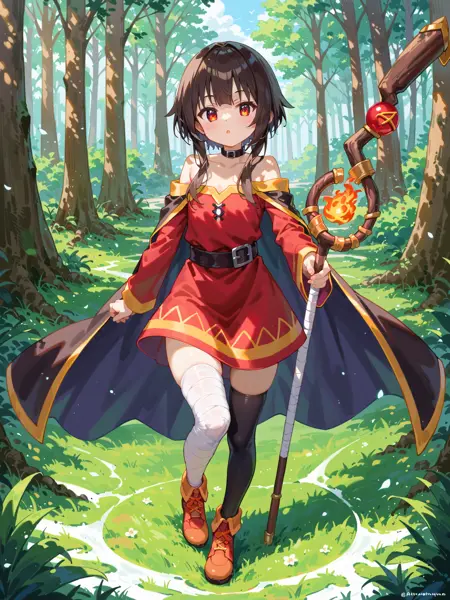 • 触发词: 1girl,megumin,bandaged leg, black stocking,hat,staff