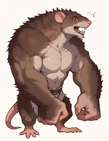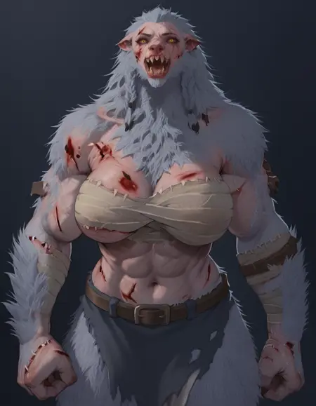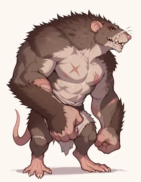 RatOgre, 棕色皮毛, 缝合线, 疤痕, 绷带, 腰带, 义肢武器,