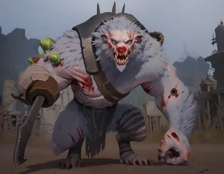 RatOgre, 白色皮毛, 缝合线, 疤痕, 暴露的头骨, 血腥, 义肢武器,