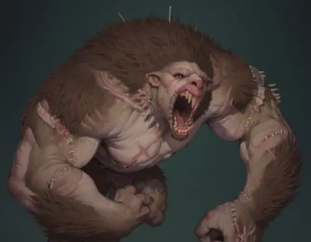 主塑形者通过邪恶的杂交与黑暗的魔法手术,找到了完美融合杀戮生物的方法。在他们的人工制造过程中,许多野兽被 literally 缝合在一起,这一不可能的壮举通过一种由强效狂石衍生的药膏——著名的斯卡姆——的融合力量得以实现。鼠巨魔结合了斯卡文的速度与凶猛,以及巨魔的纯粹力量。