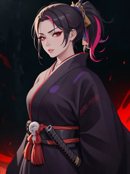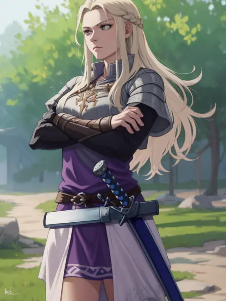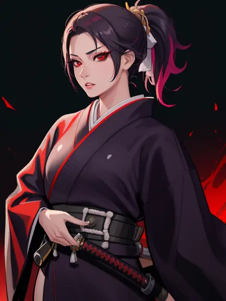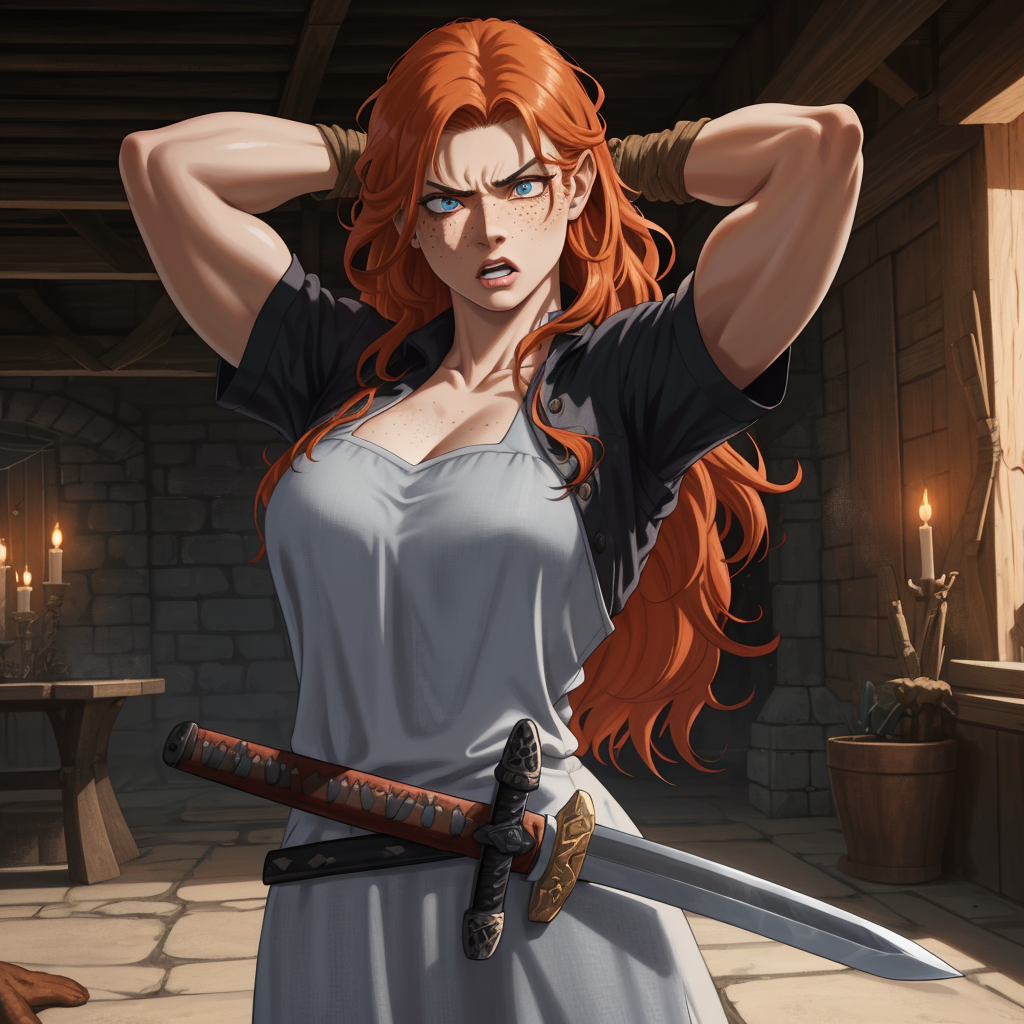 我建议同时使用“arms up”或“crossed arms”,否则角色很可能不会以手持刀鞘的姿态生成。