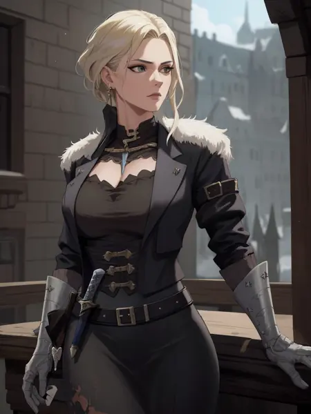 추가로 "arms up" 또는 "crossed arms"도 사용하는 것이 좋습니다. 그렇지 않으면 캐릭터가 보호장치를 쓴 검을 들어서 생성될 가능성이 높습니다.