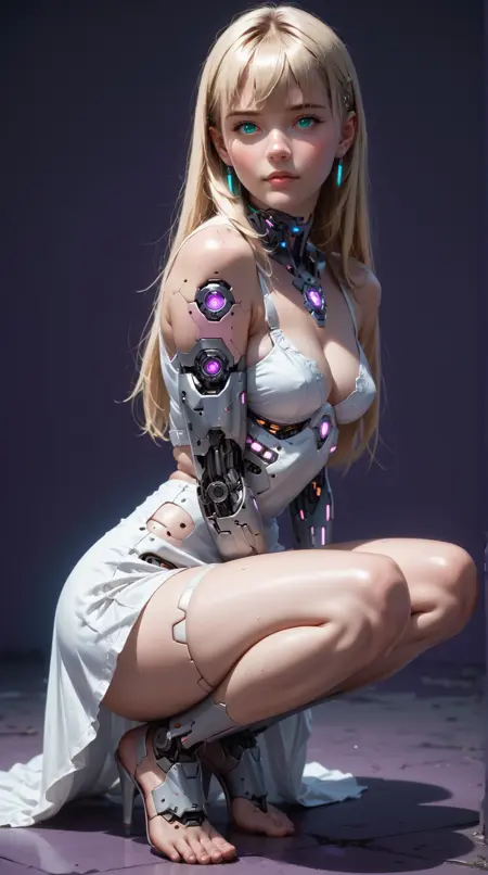 joins your scenario using the followings: reij-cybrwrdrbdrss03, white dress, cyborg body details,