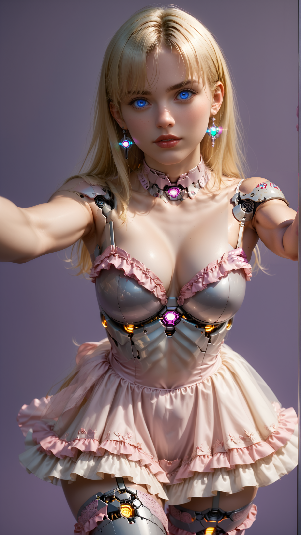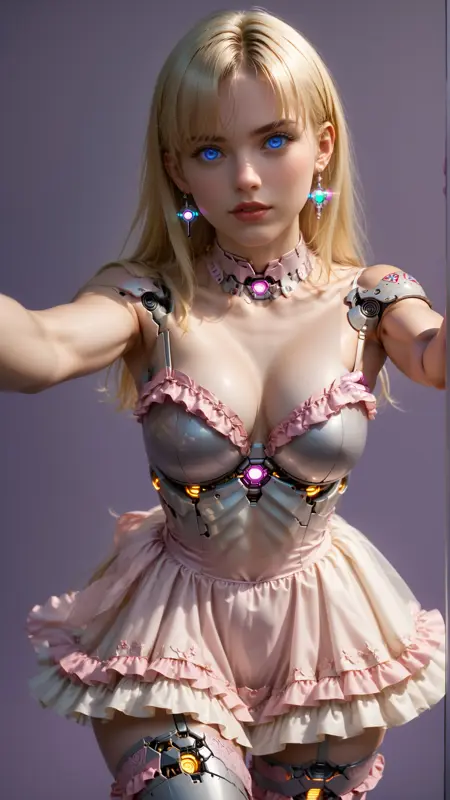 joins your scenario using the followings: reij-cybrwrdrbdrss04, cyber top, pastelpink ruffled skirt, cyborg body details, choker, cyberstockings, white gloves
