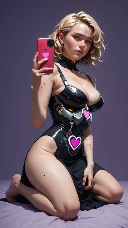 使用以下内容加入你的场景:reij-cybrwrdrbdrss02, 透明黑色裙子, 心形图案, 侧切版, 仿生身体细节