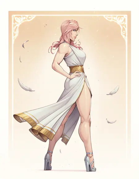 복장 - 손가락 없는 장갑, 재킷, 미니스커트, 망토, 어깨 갑옷, 부츠, 팔꿈치 장갑, 벨트, 허벅지 스트랩