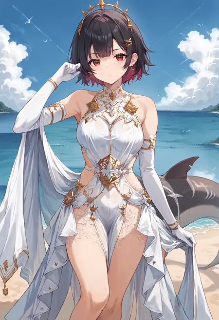 P/N: hair ornament – 날개처럼 보이는 머리카락/뿔 장식이 나타나지 않을 때 사용(정확히 맞추기 위해 몇 번 시도해야 할 수 있음. 대안으로 부정적 키워드로 넣을 수도 있음. 티아라는 이러한 태그 없이도 작동함)