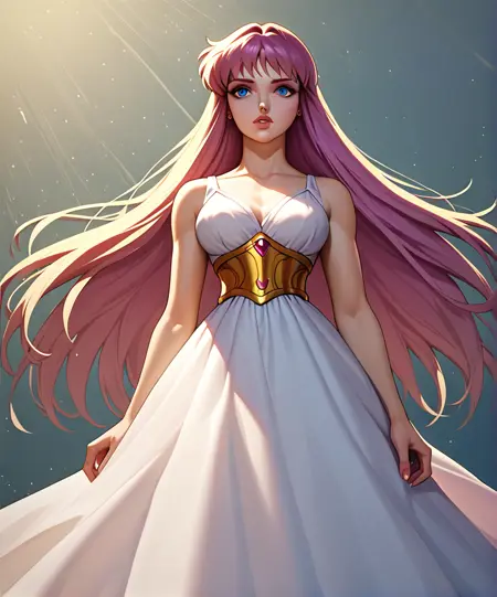 1girl, solo, athena, saori: these work fine, they are the basics, in fact I don't know if 1girl, solo is necessary but there they are....