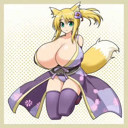Version 2.0 is better about maintaining her black undershirt/turtleneck thing if you include tag "black leotard". Version 2.0 was also trained on a bigger image set with more training steps, so best fox looks more Yukikaze-like. Enjoy best fox girl!