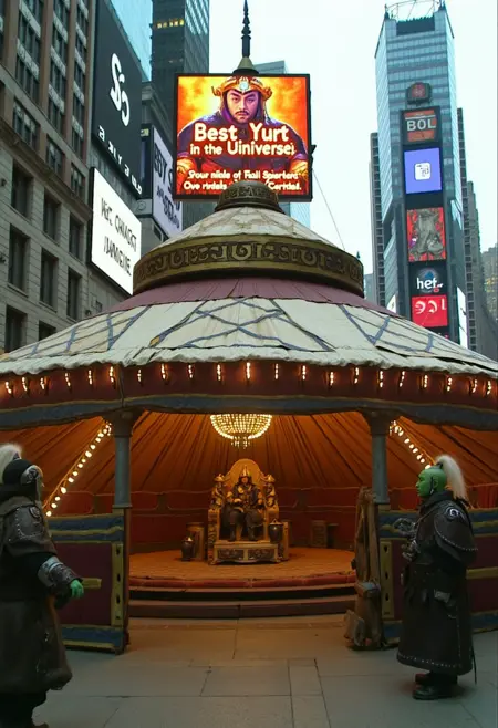 提示词一如既往使用自然语言。独特关键词(如果你需要那些漂亮的帐篷)是 yurta(帐篷)和 saray(大帐篷)。STR 1 适用,除非你打算与其他LORA一起使用。
