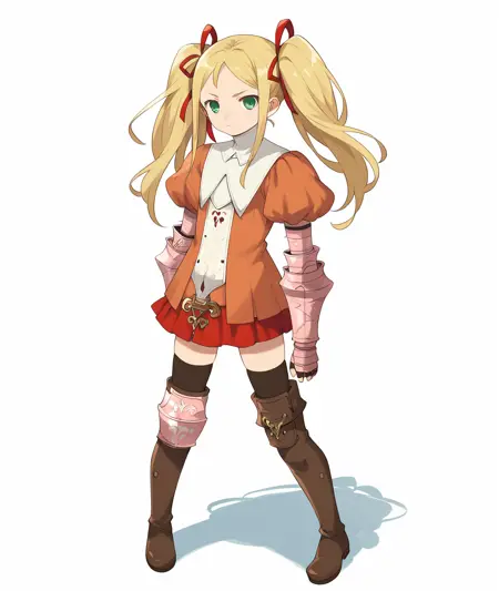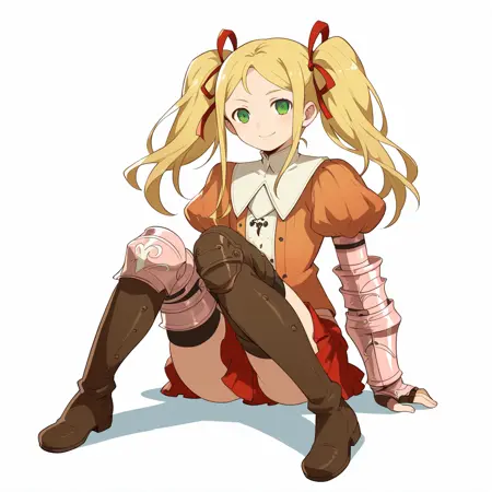 铠甲:过膝袜、护臂、盔甲、蓬松短袖、靴子、裙子、无指手套、大腿靴、绝对领域