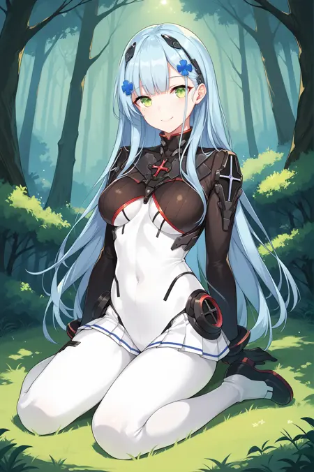 使用:1girl,hk416(少女前线),长发,单人,绿眼,浅蓝发,