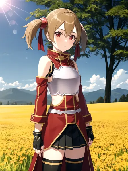 이 캐릭터의 단점 중 하나는 SAO와 ALO용 의상이 동일한 디자인을 가지며 색상만 다름 - 따라서 트레이닝 시 동일한 태그를 공유함. 이로 인해 SD가 때때로 색상을 잘못 인식하여 빨간색과 파란색 의상을 뒤섞을 수 있음. 랜덤 결과를 피하기 위해 프롬프트/네거티브 프롬프트를 조정해야 할 수도 있음.