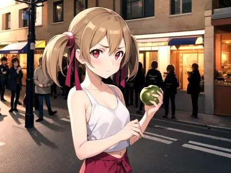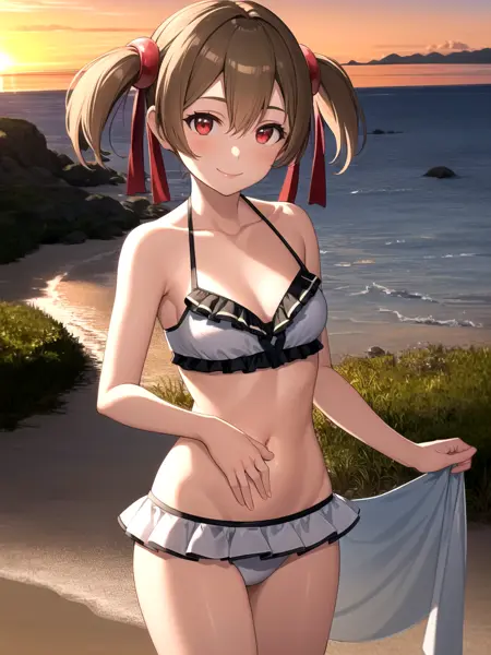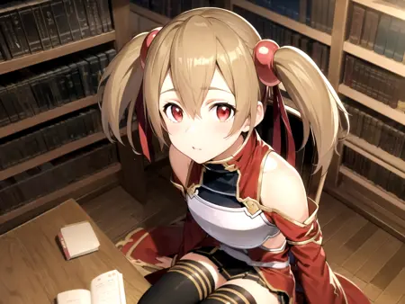 이 캐릭터의 단점 중 하나는 SAO와 ALO용 의상이 동일한 디자인을 가지며 색상만 다름 - 따라서 트레이닝 시 동일한 태그를 공유함. 이로 인해 SD가 때때로 색상을 잘못 인식하여 빨간색과 파란색 의상을 뒤섞을 수 있음. 랜덤 결과를 피하기 위해 프롬프트/네거티브 프롬프트를 조정해야 할 수도 있음.