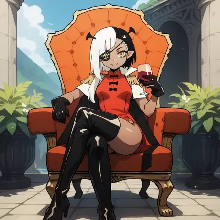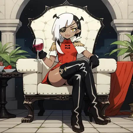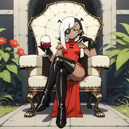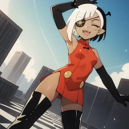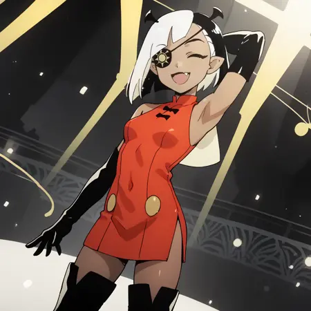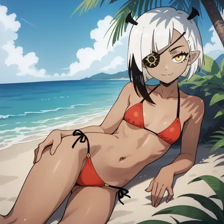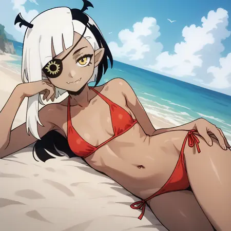 트리거 단어 및 외모: lugosichan, 노란 눈, 안대, 검은 피부, 이색 머리카락, 검은 머리카락, 하얀 머리카락, 피부 이빨