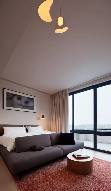 간단한 키워드로 해당 프롬프트를 효과적으로 트리거할 수 있습니다. 예: 거실 / 빨간 소파 / 녹색 식물 / 카페트 등....