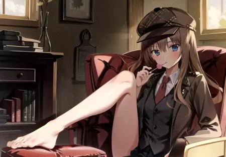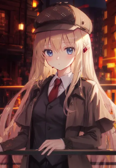 SD 모델은 옷을 잘못 인식할 수 있으므로, AI에게 올바른 표현을 유도하기 위해 적절히 "deerstalker"(사실 이 Lora의 핵심은 그 어렵게 그려야 하는 사냥용 모자인 Deerstalker) , "brown overcoat"(갈색 외투), "red tie"(빨간 넥타이) 등을 추가해 주세요.