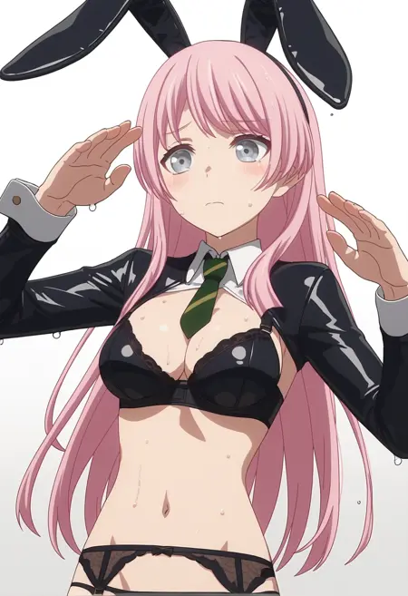 TAGS:chihaya anon、ピンクの髪、グレーの目、学校制服