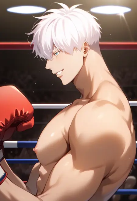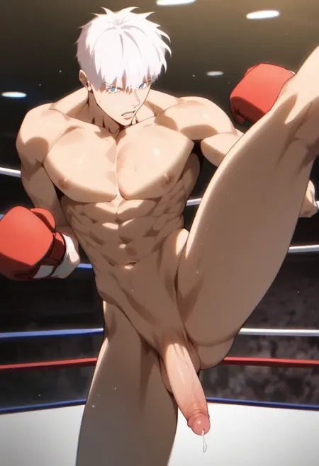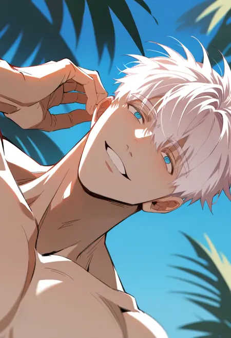 1소년, 남성 초점, 혼자, 단발, 흰색 머리카락, 앞머리, 파란 눈, 근육질의 거대한 소년,