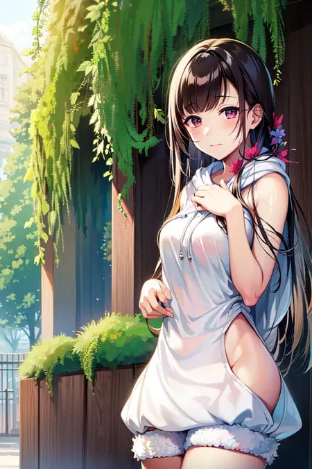 推奨プロムプト:黒髪、角、ふっくらとした胸元、毛皮のフリル付きレッグウェア、黒色のレッグウェア