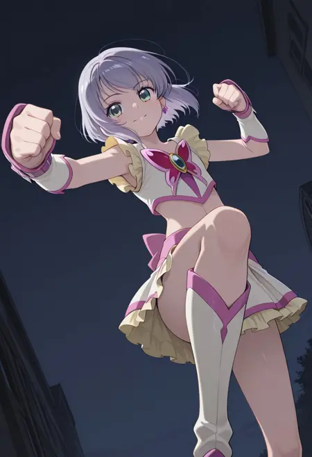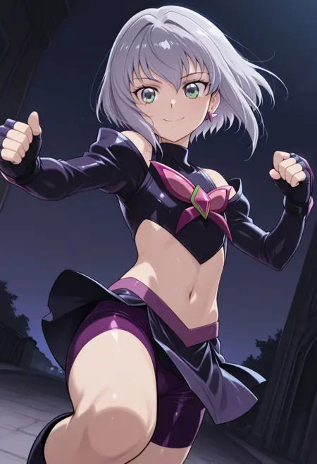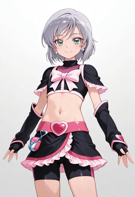 프롬프트: ernesti echevalier,tomgirl,1boy,male focus,smile,shoulder cutout,blue eyes,clothing cutout,looking at viewer,solo,grey hair,short sleeves,bangs,otoko no ko,shirt,upper body,medium hair