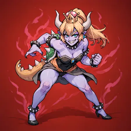 这个 LoRA 让你的女仆呈现出 Dr. Andonuts(来自 Earthbound: Radiation's Halloween 修改版)最终形态的恶魔外观:蓝色/紫色皮肤、火焰披风和邪恶的笑容。
