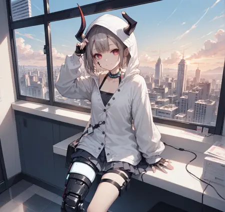 vulcan, 회색 머리, 단발, 앞머리, 뿔, 보형 다리,