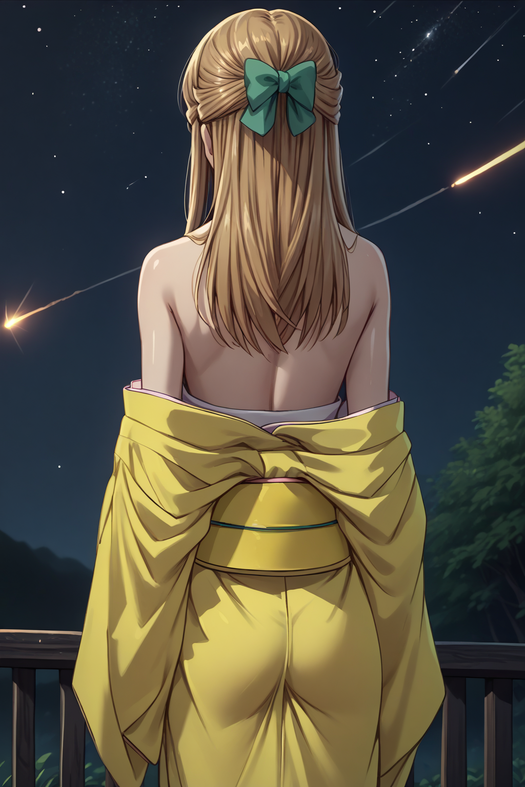 Main prompts for whatever outfit: NSRitsuFrusket, grey eyes, medium hair, half updo, green hair ribbon