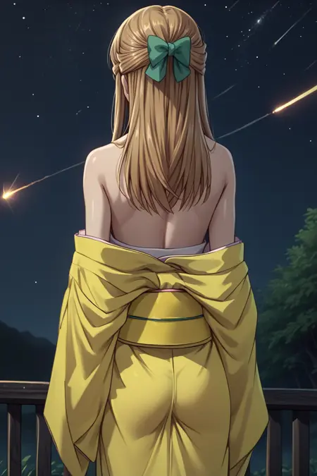 For Ritsu's main outfit (the green kimono), please use: NSRitsuFrusket, grey eyes, medium hair, half updo, green hair ribbon, light brown hair, green kimono, yellow obi, long sleeves, wide sleeves, floral print