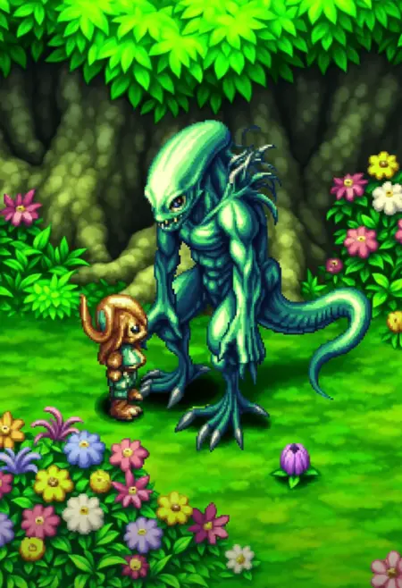 おはようございます。美しい手描きの背景と、詳細なピクセルアートのキャラクターを組み合わせてみませんか?とても良いご選択です。0バズ、それにチップを加えてください。