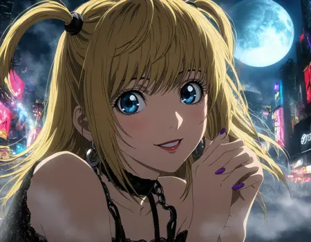 This model was trained on 192 images of Misa Amane it also knows what death note (notebook) is. Full body images are glitched for now