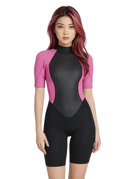 A short black and pink wetsuit