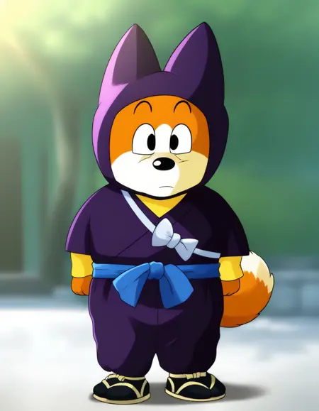 shuudb, furry, orange fur, ninja, black eyes, hood, shoulder sash, sash