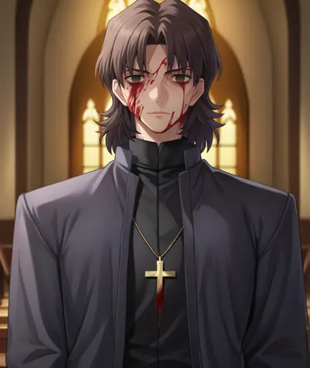 lora:kireikotomine:0.8 kotominekirei, 1boy, kotomine kirei, 갈색 머리, 갈색 눈, 단발, 볼뼈, 중간 갈라진 앞머리,
