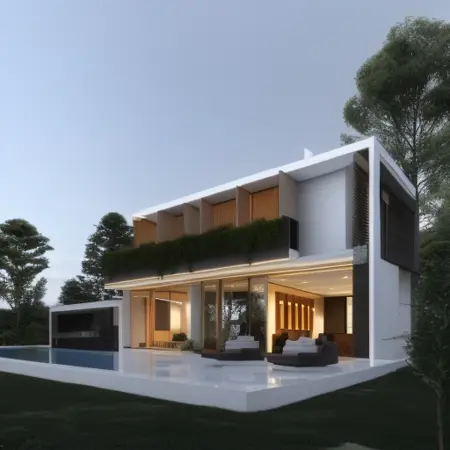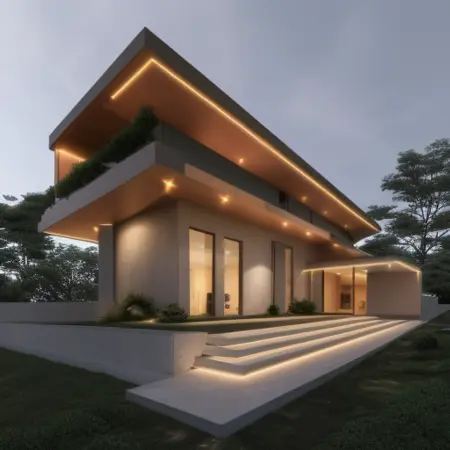 DROP DEAD GORGEOUS하고 BEAUTIFUL한 이미지를 원하시면 트리거 워드를 사용하세요: "gdmext luxury modern house". 스텝 45, CFG 8