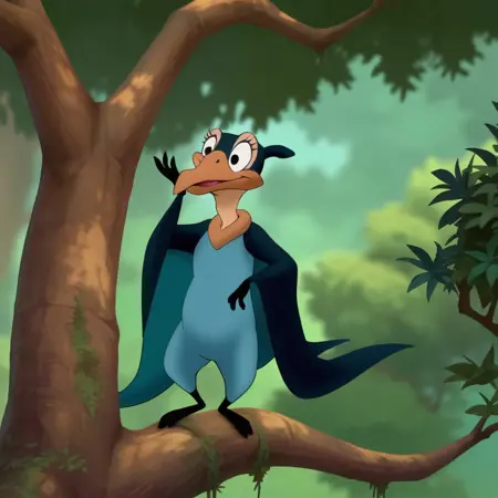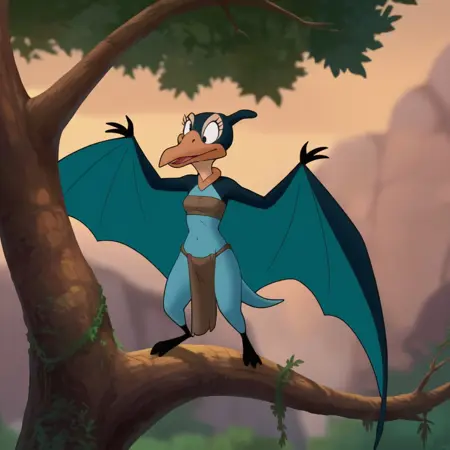 mamaflyerlbt, feral, female, Pteranodon, blue skin, orange beak, black eyes, membranous wings, winged arms, 3 fingers, 3 toes, adult feral