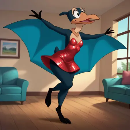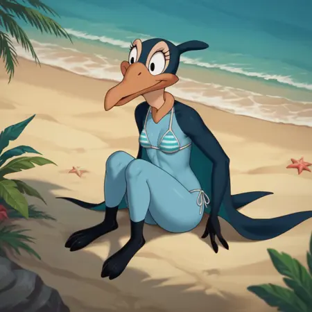 mamaflyerlbt, anthro, female, Pteranodon, blue skin, orange beak, black eyes, membranous wings, winged arms, 3 fingers, 3 toes, adult anthro