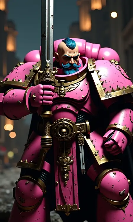 这个LoRA围绕多种类型的星际战士装甲设计,包括禁军、叛徒,甚至帝皇装甲也都融合其中。我希望能通过提示词实现高度自定义,强烈建议尝试不同的颜色、装甲部件、武器、头盔和徽章组合。