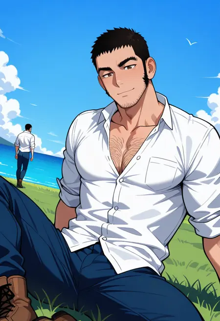 애니메이션캐릭터baramuscularhandsomemuscular malemasculineblack hairyaoianime characterjapanesemalemanshort hairuniformasian manmeijisoldiersnipercoatheadbandmilitary uniformcapmature malebuzzcutblack eyesmarriedhunkgolden kamuymale charactermuscular manhairy manstubblejapanese armyathletic bodymilitary coatainuhairypecsputteegenjirou tanigakijapanese man