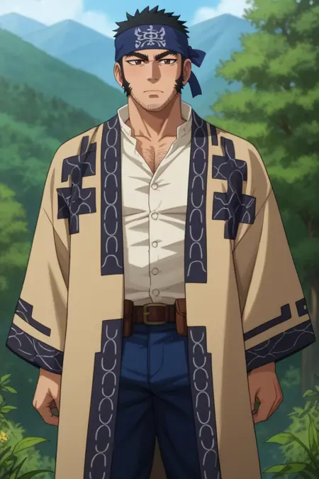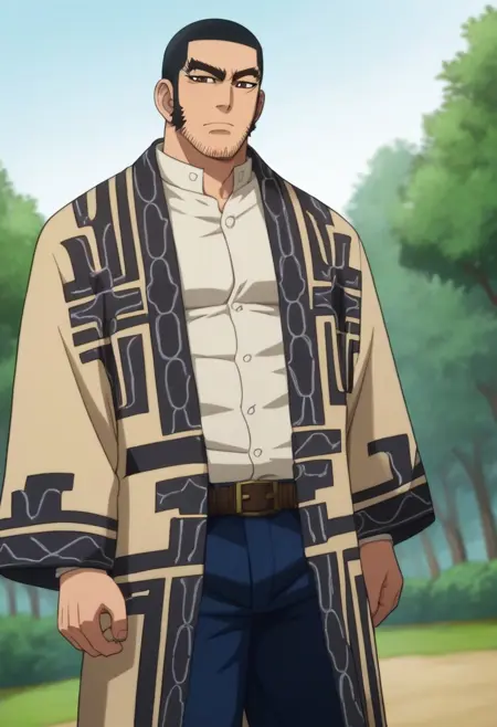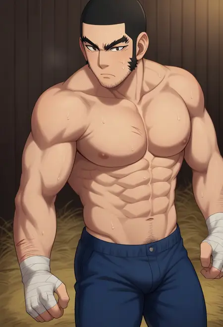 | Trained Words | Genjirou Tanigaki, GKGenjirou, black hair, short hair, buzzcut, dark brown eyes, thick eyebrows, long sideburns, facial hair, chinstrap stubble, jawline stubbleCopied! Genjirou_outfit05, white tunic collar shirt, Ainu robe, Attush robe, open robe, open clothes, Ainu pattern, blue Ainu headband, Matanpushi, dark blue straight trousers, belt pouch, white puttees, brown bootsCopied! Genjirou_outfit01,Imperial Japanese Army uniform 1886 version, dark blue tunic jacket, fur trim vest, brown vest, belt pouch, dark blue straight trousers, single stripe pants, white puttees, brown bootsCopied! Genjirou_outfit04, Imperial Japanese Army uniform 1886 version, dark blue tunic jacket, Ainu robe, Attush robe, open robe, open clothes, Ainu pattern, dark blue straight trousers, white puttees, brown bootsCopied! Genjirou_outfit08, crossdressing, pink dance headband with bowknot, two-tone dress, red/white blouse, two-tone blouse, white ruffle on blouse, white sleeves, short sleeves, yellow frilled skirt, short skirt, white pantyhose, white footwearCopied! Genjirou_outfit06, white tunic collar shirt, sleeves rolled up, dark blue straight trousers, single stripe pants, brown bootsCopied! Genjirou_outfit07, topless, shirtless, hand wraps, bandaged fist, wrist bandage, dark blue straight trousers, white puttees, brown bootsCopied! |