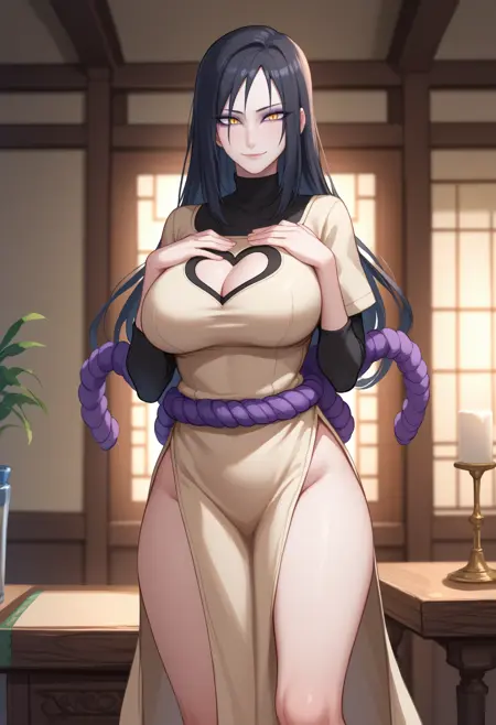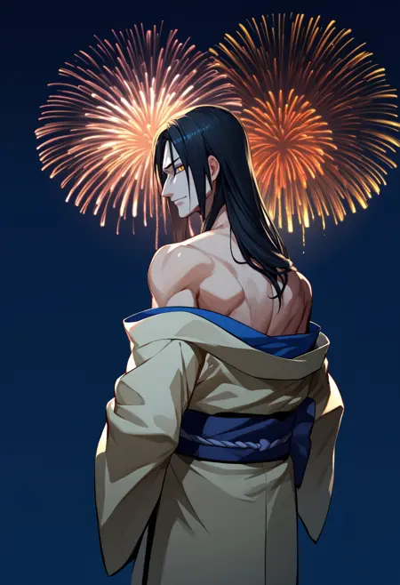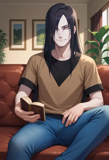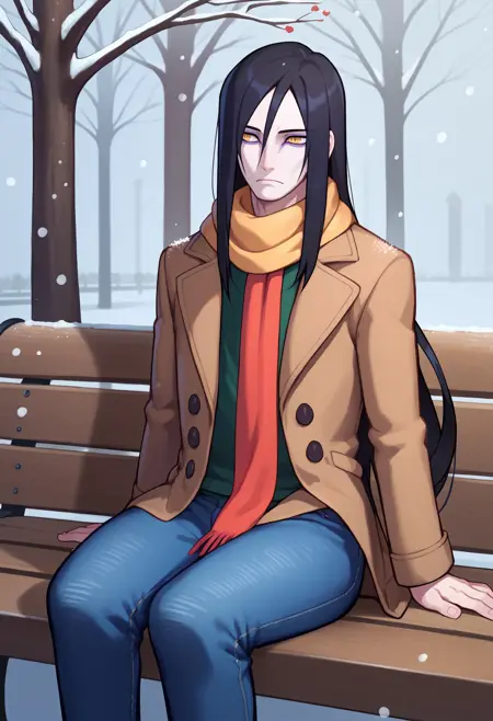 트리거 + 외모: orochimaru, 창백한 피부, 메이크업, 긴 머리, 검은 머리, 노란 눈, 수직 동공