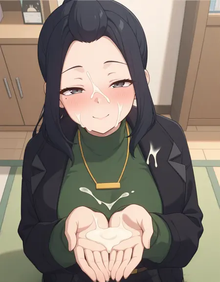 회색 눈, 검은 눈, 검은 머리, 이마, 긴 머리, 눈 밑 주근깨, 말꼬리, 옆머리,